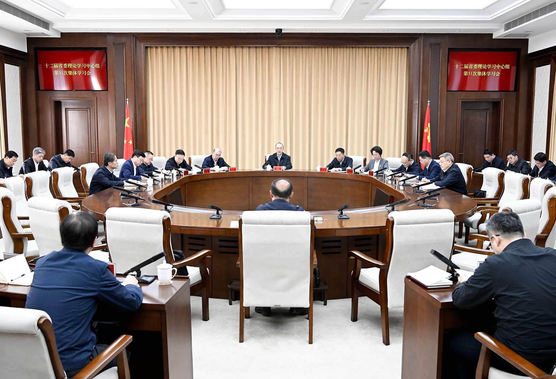 4月23日,省委书记黄强主持召开省委理论学习中心组集体学习会。省委副书记、省长胡玉亭,省政协主席朱国贤出席会议。张野 摄
