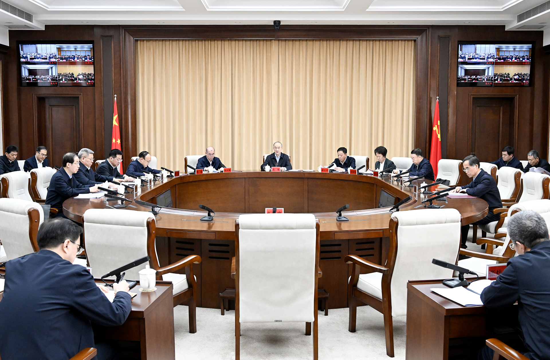 4月7日,省委书记黄强主持召开省委学习教育专题学习会。省委副书记、省长胡玉亭,省政协主席朱国贤出席会议。张野  摄